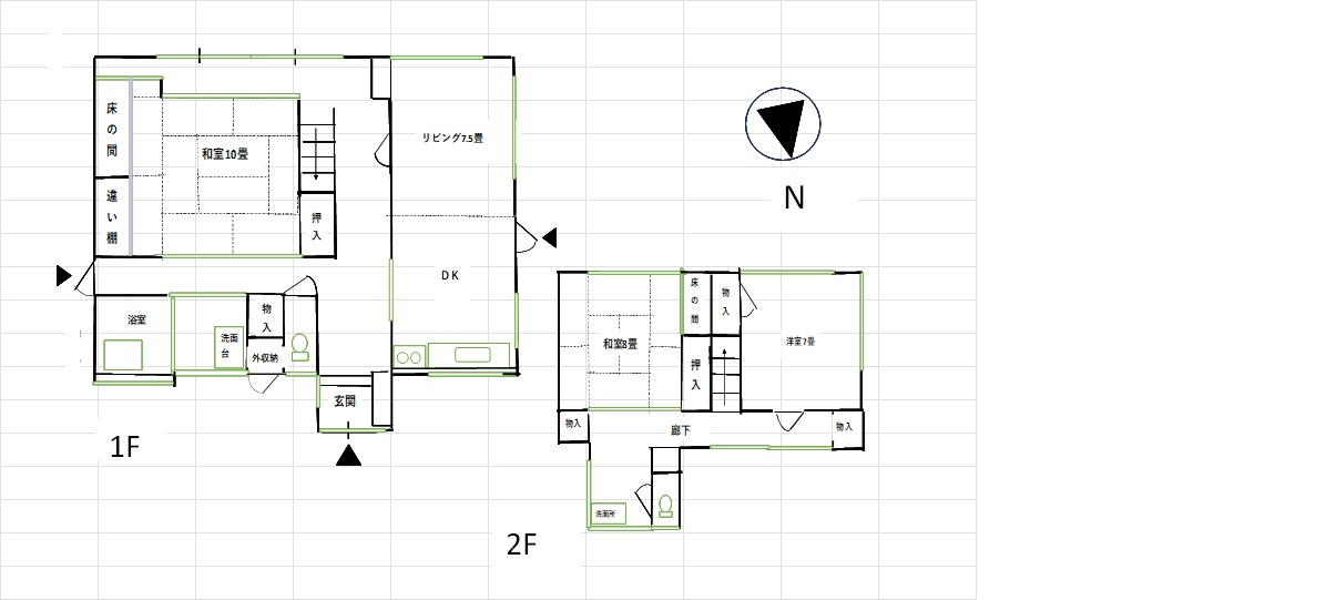 ・1階のトイレは水洗、2階のトイレは簡易水洗です。